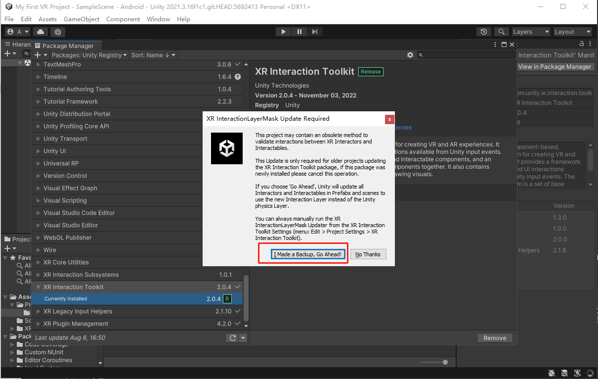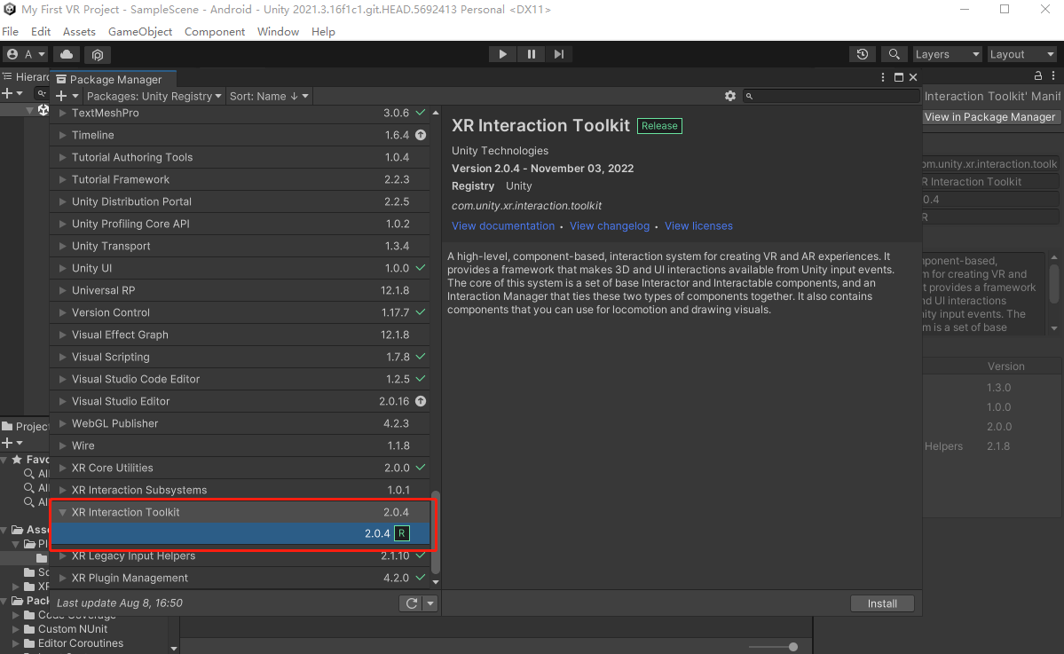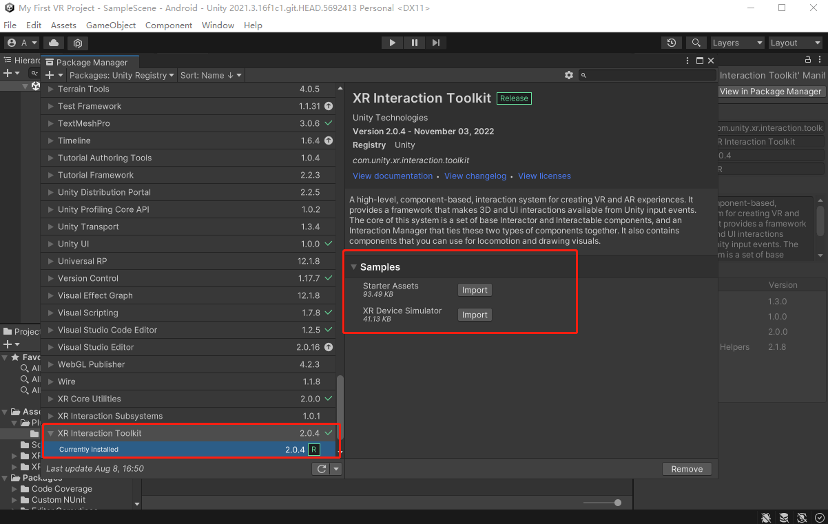 再次前往 Windows > Package Manager > XR Interaction Toolkit。