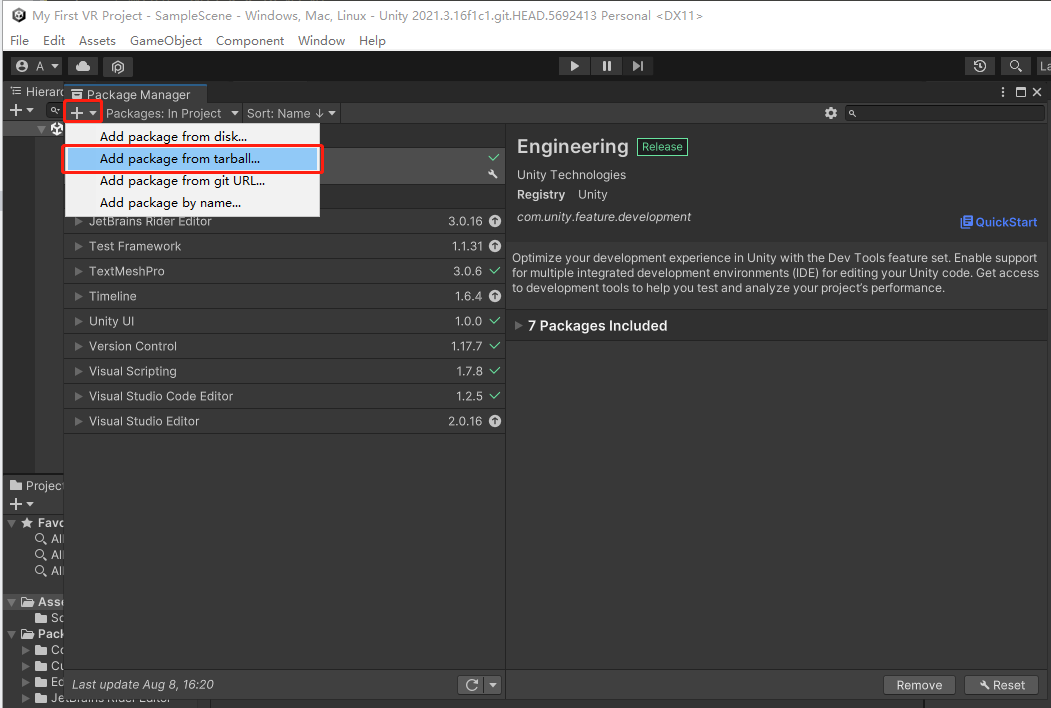 选择 com.svr.openxr-1.0.0.tgz 文件并导入。
