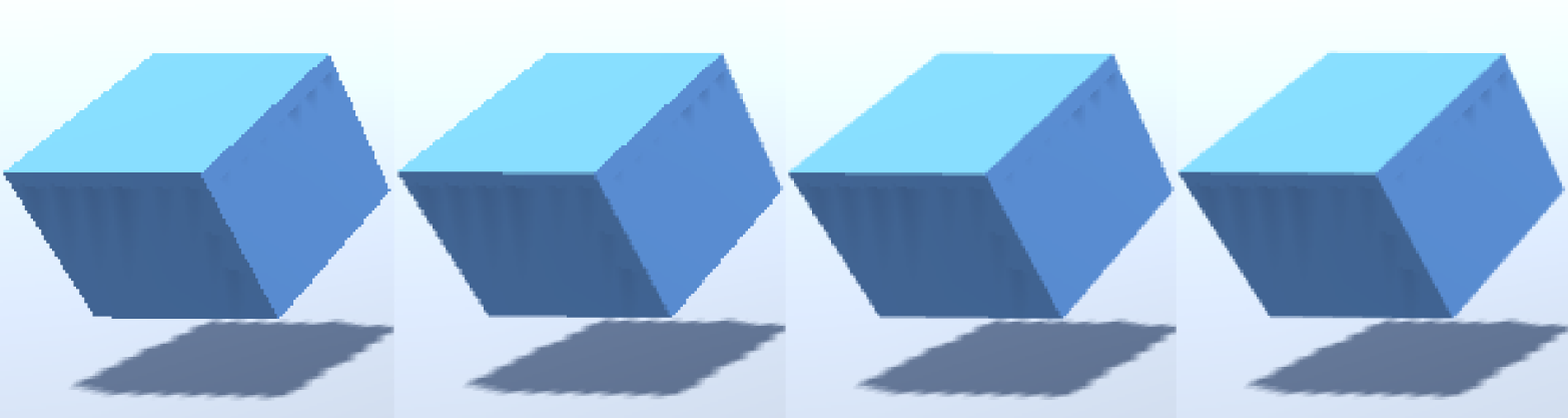 从左至右依次为:原图、2 倍抗锯齿、4 倍抗锯齿、8 倍抗锯齿。